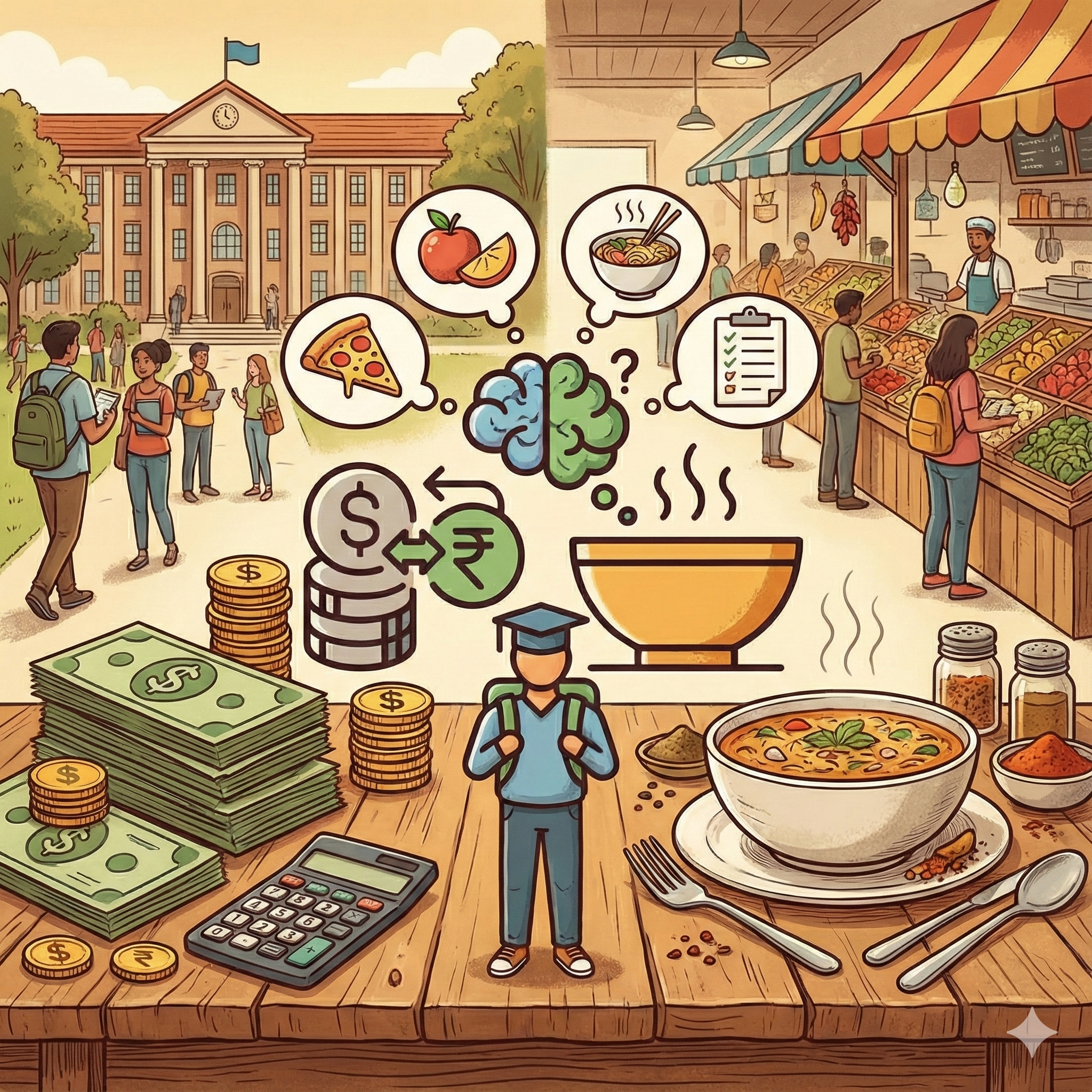 Understanding how international students navigate food decisions when their home currency has significantly lower value than local currency.